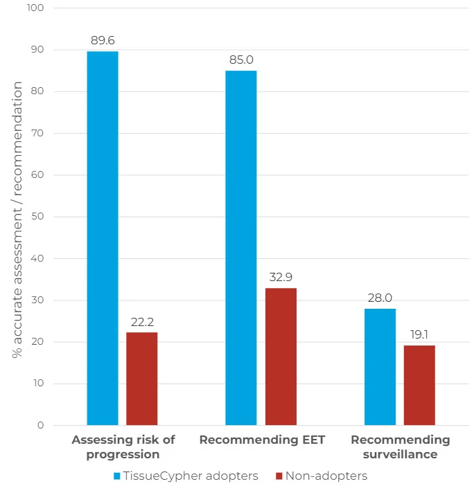Findings from this study demonstrate that TissueCypher has the potential to significantly improve the quality of clinical care decisions for BE management, enabling risk aligned care decisions that may lead to better patient health outcomes. This study provides support for TissueCypher's ability to: