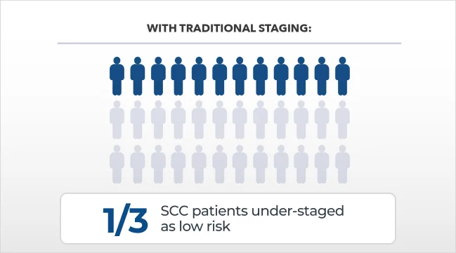 35% of cases with metastasis are under-called by staging and can lead to an unforeseen metastasis in traditionally low-risk SCC patients.6